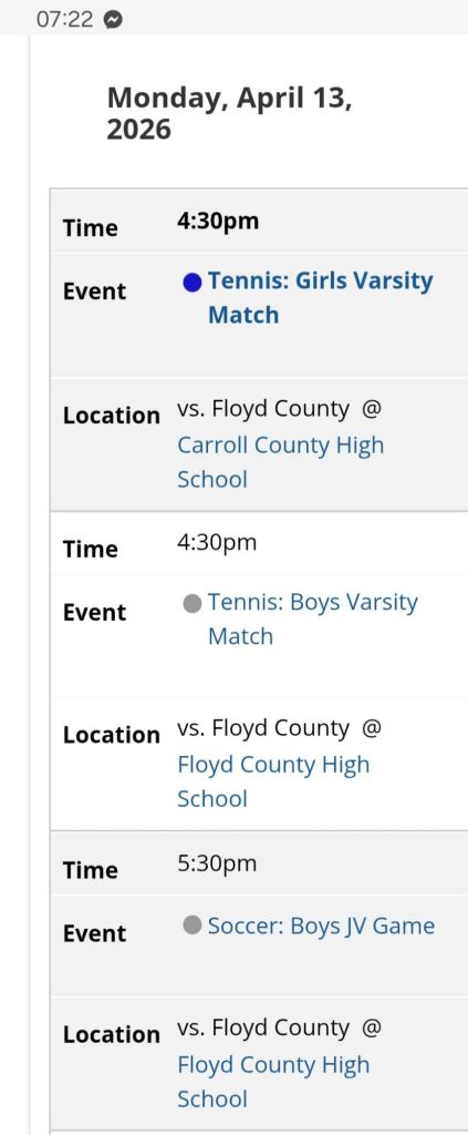 Monday morning is here, officially ending Spring Break 2026 ! Let’s see π what is on the docket for our first day back… Morning π Brew Two tennis πΎ and three Soccer β½οΈ on Day 1 of 2 versus Floyd County Travis Osborne and his Bible Verse of the Day : Romans 15:2 Let every one of us please his neighbour for his good to edification. Howard Mayo and his Motovational Nugget for the Day : Damian, the pride of Weber State Hope you have a Blessed Day π