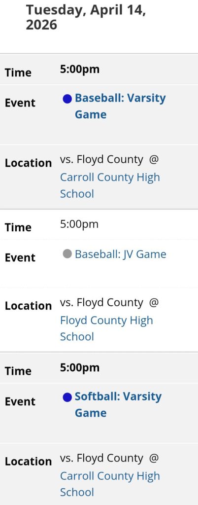 Today, it will be JV Softball, which will be idle as the neighboring counties face off.