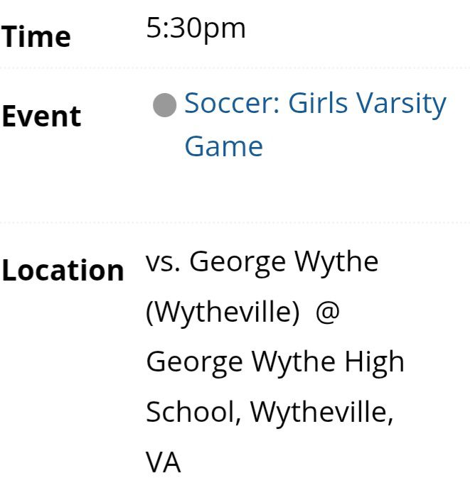 Girls π§ Soccer continues a very busy stretch of three matches in four days, heading up to George Wythe. Sadly for Brittany Kinney, her JV squad will be idle for the third straight time. But the good news is that they will return to action π¬ on Thursday afternoon.