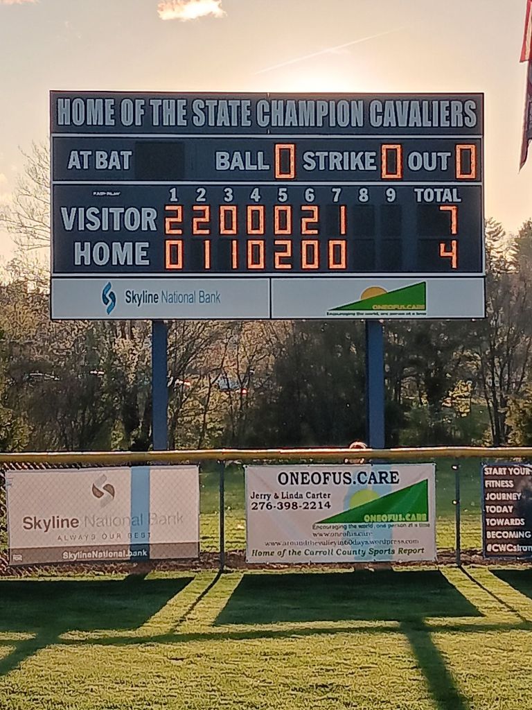 The scoreboard shows you that Floyd County outlasted our Lady Cavaliers in a Three Rivers District contest, 7-4.