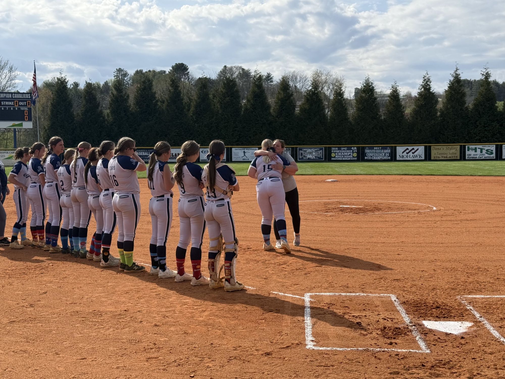 The contest was the first or second close game of the season for Carroll County, and in the bottom of the fifth inning, our Lady Cavaliers climbed out of a 4-0 deficient.Β The emotion of Holly Miller stepping on home plate to tie the score at 4-4 showed just how much the senior centerfielder wanted to win against the visiting Lady Buffaloes π.
