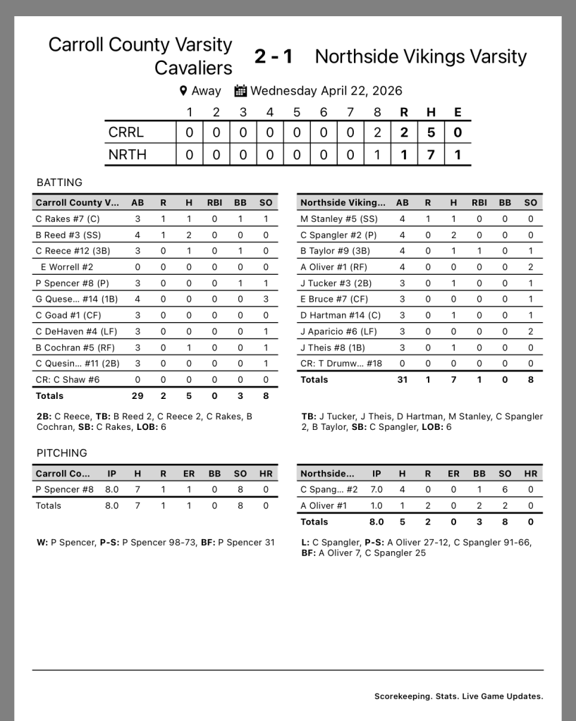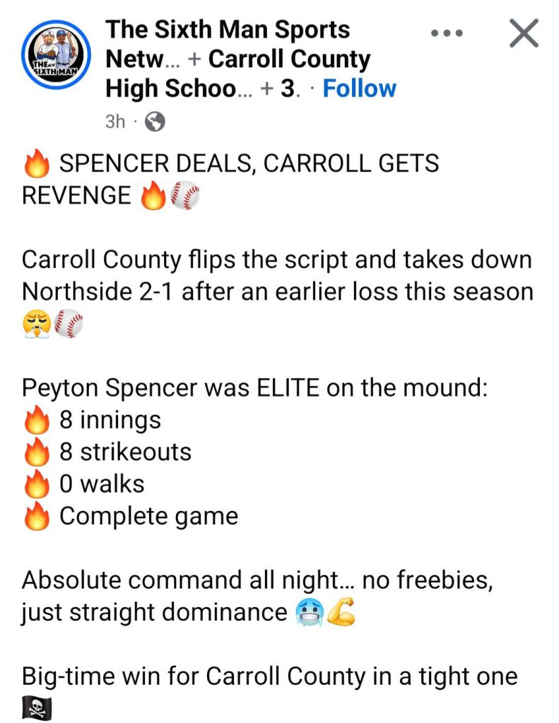 Northside would answer back with one run in the bottom of the frame, but Spencer would finish what he started.