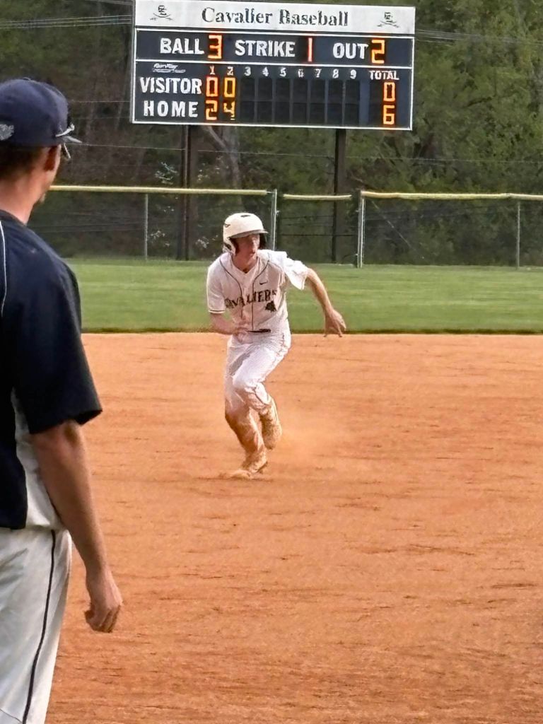 Carroll County Junior Varsity Cavaliers got on the board in the bottom of the first inning after Jayden Wright grounded out, and Jathan Cox doubled to center field, each scoring one run.