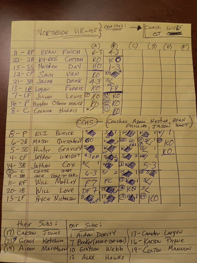 Jacob Doak led Northside Vikings Junior Varsity with one hit in two at bats.