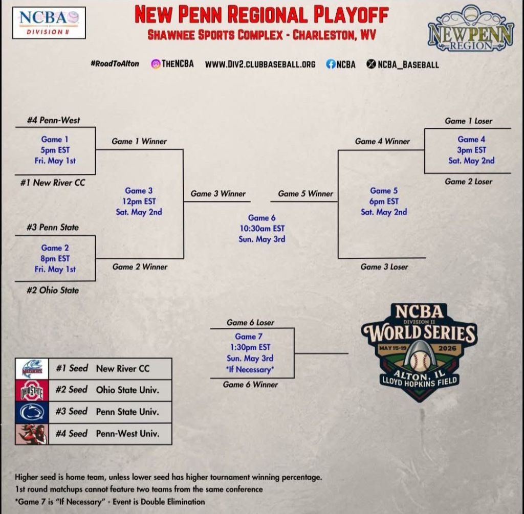 Look at who has the #1 seed in Charleston, West Virginia, this weekend. New River Community College is locked π in and ready to start the postseason. Around the Valley in 60 Days Carroll County High School, Saved by the Bell π April 30, 2026 1 Minute Hoping for the best for Coach Adcock, our three Cavaliers, and their teammates ! 5pm – 1st Pitch ! Share this: Share on Facebook (Opens in new window) Facebook Share on X (Opens in new window) X Like Loading... Related Published by Around the Valley in 60 Days Trying to find Positive in a World π that needs more of it! View all posts by Around the Valley in 60 Days Published April 30, 2026