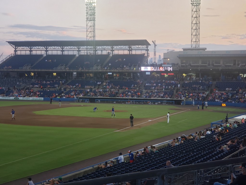 Night π has begun to fall here and the Good Guys are leading 5-1 in the top of the sixth inning. While most baseball fans are watching the MLB Home Run hitting contest right now, either in the park in Denver or at home with family and friends, the two squads continue to chase the dream of one day inking a professional contract so they can take long bus rides as they work their way through the Minor Leagues.