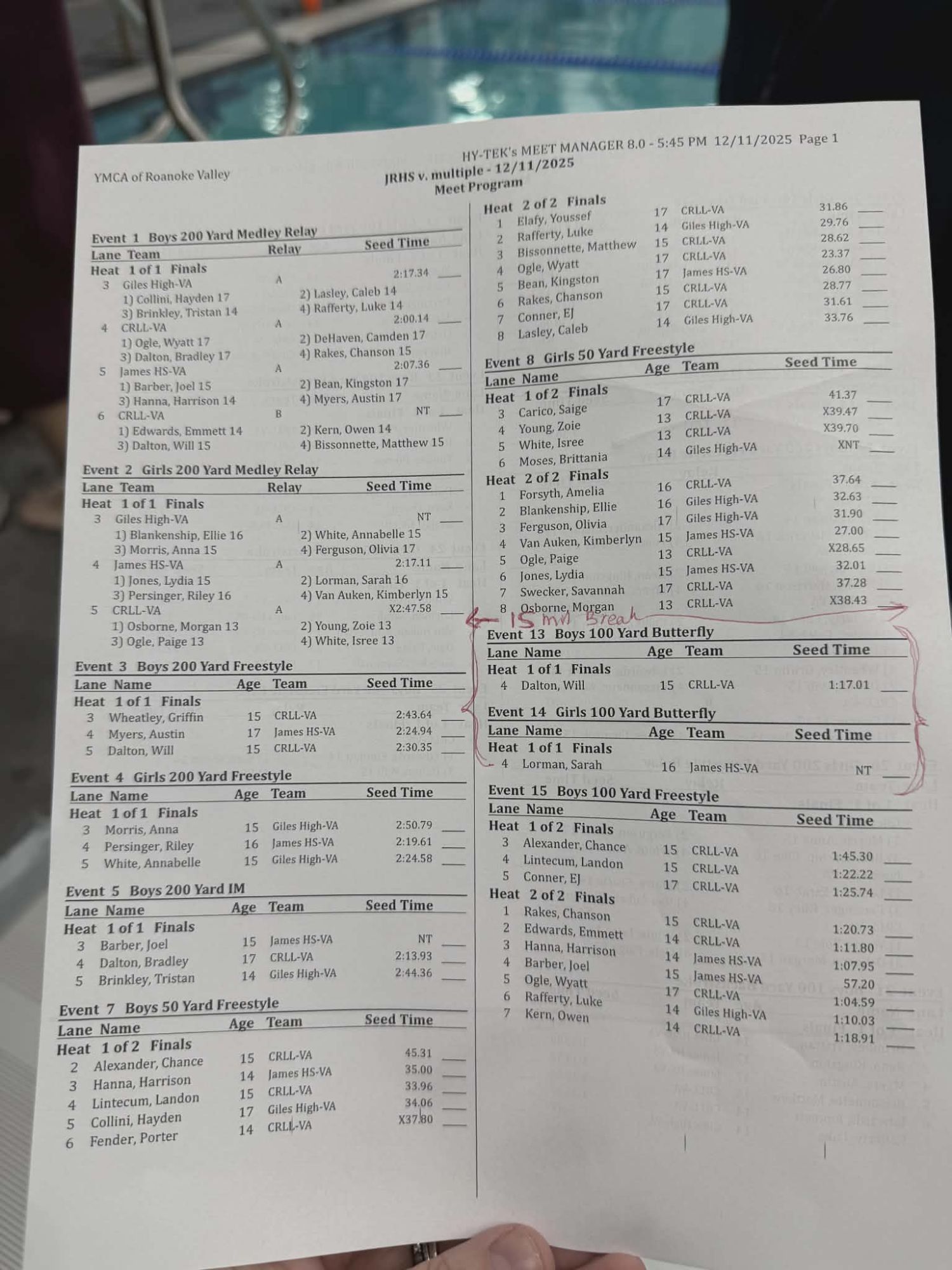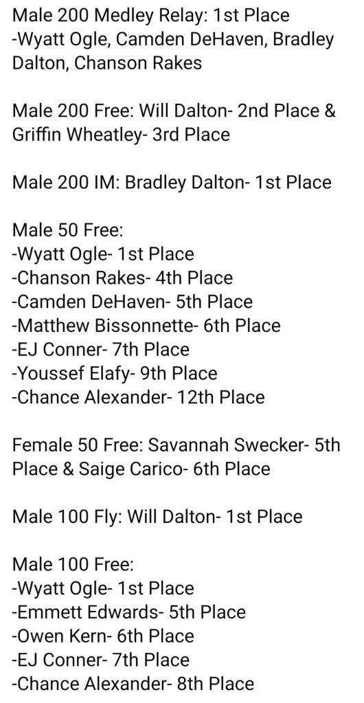 Here’s what you should know about attending a Swim meet. For the most part the events are self governed, a little bit different from say a Basketball game or Football game. Mrs Osborne and Mrs Dalton were both very hands β on last night up in Daleville.
