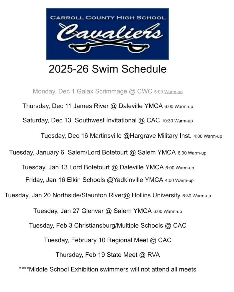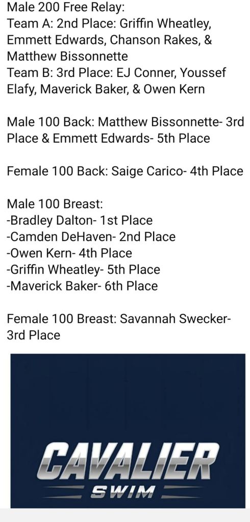 We will have Student Athletes swimming πββοΈ, wrestling and playing volleyball π today. This means West Long, Joi Ogle and Cindy Edwards will be coaching our Cavaliers up!