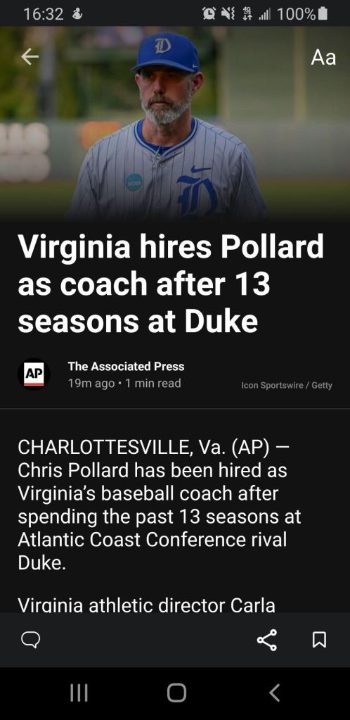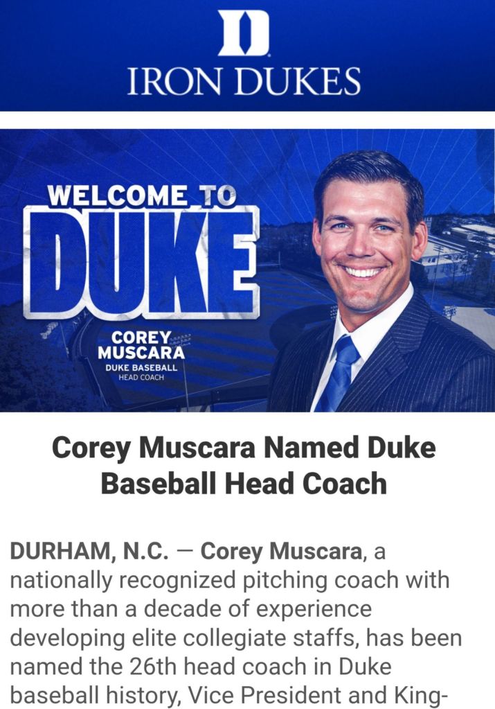 Mississippi State University pilfered the University of Virginia Baseball program, then UVA did the same to Duke University and now we wait to see how Duke rebounds. Hopefully they can break the trend of hiring a current Head Coach that will trigger a complete rebuild.