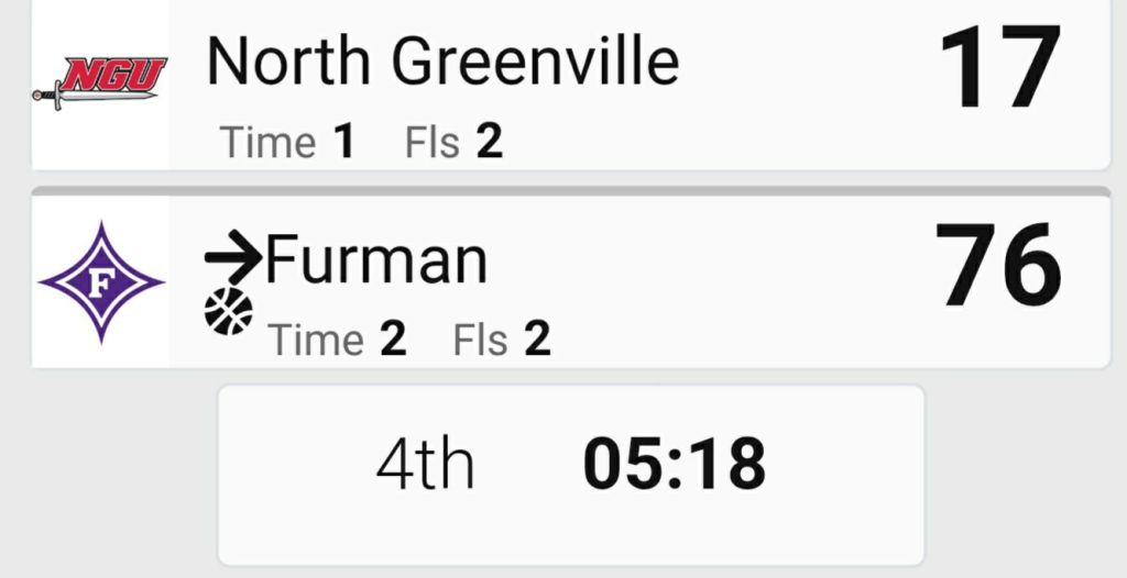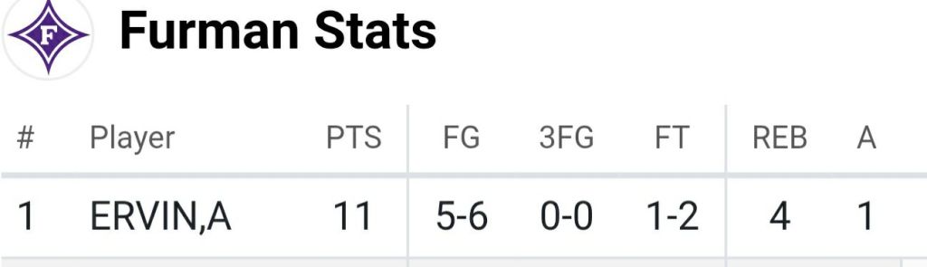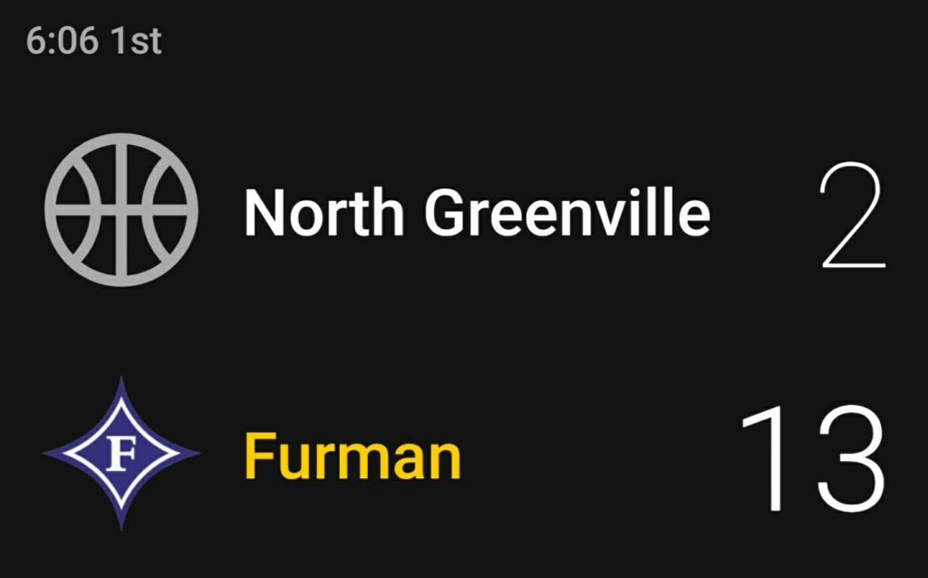 Furman University 24-4 after 1st quarter.