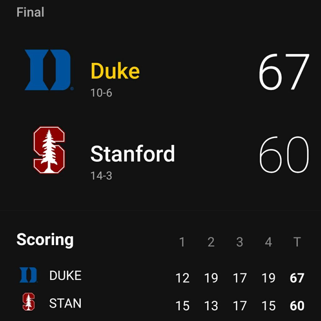 They had a bonus offer from a local restaurant for a free Cheeseburger π if Duke missed consecutive free throws in the second half and thankfully the home fans went home hungry….