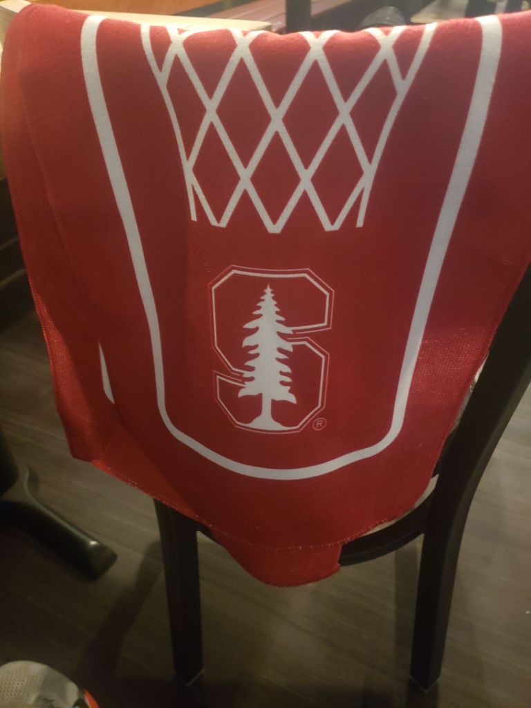 One of the two giveaway items today was a Stanford University Cardinal rally towel.