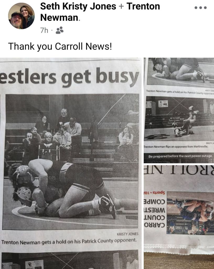 So excited about Kristy Jones having some of her efforts to support ” Her Trenton ” and all of the West Long led Wrestlers land in The Carroll News !!! Kristy has been an absolute pleasure to work with all season π and I know how much her Children mean to her !