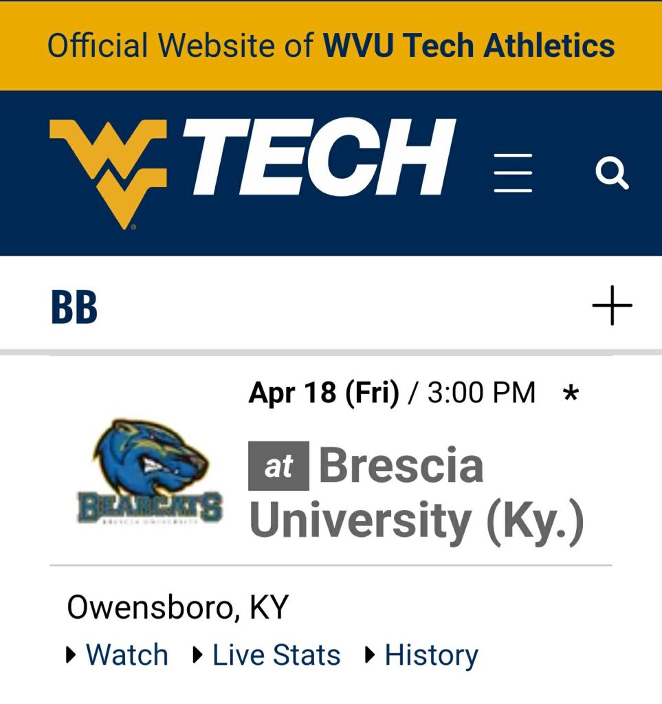WVU-T and Brescia University close out the series with a single game on Friday while CCHS has started the Easter Break.