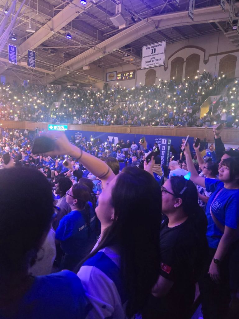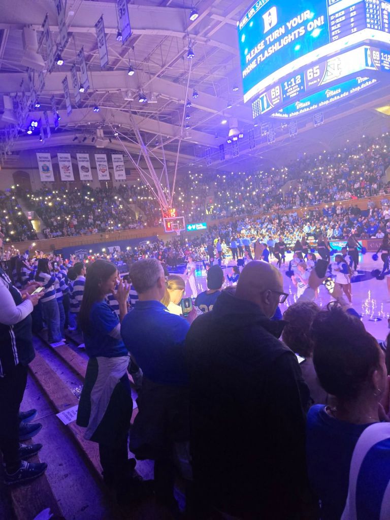 The end of the 3rd quarter and Duke is racking up fouls. Still leading by 20+, 66-41. 1:03 pm