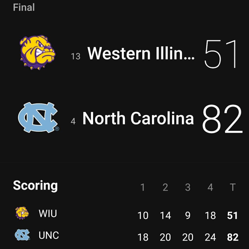 In of the first quarter, Tar Heels 16, Western Illinois 10 (6:04)